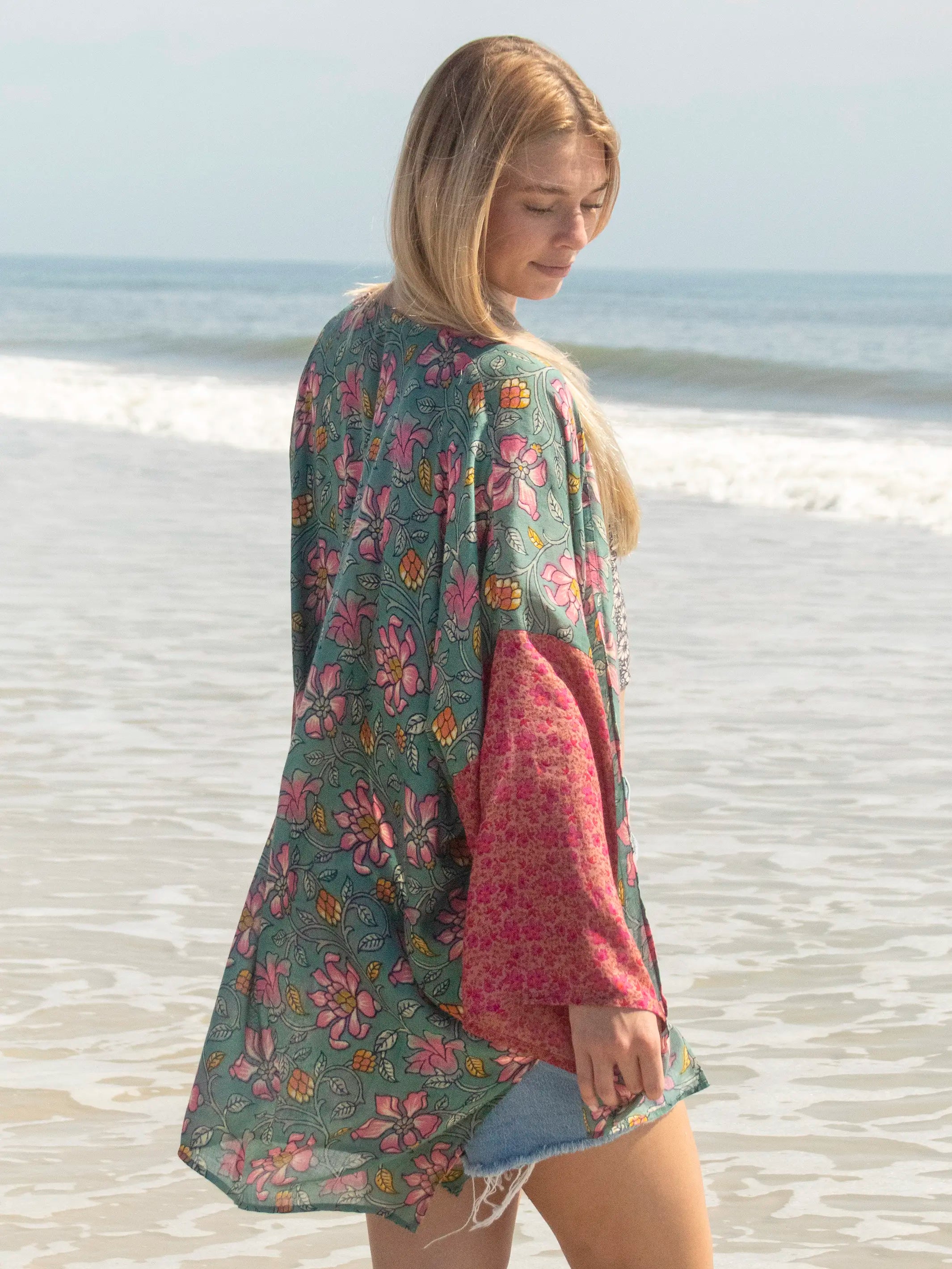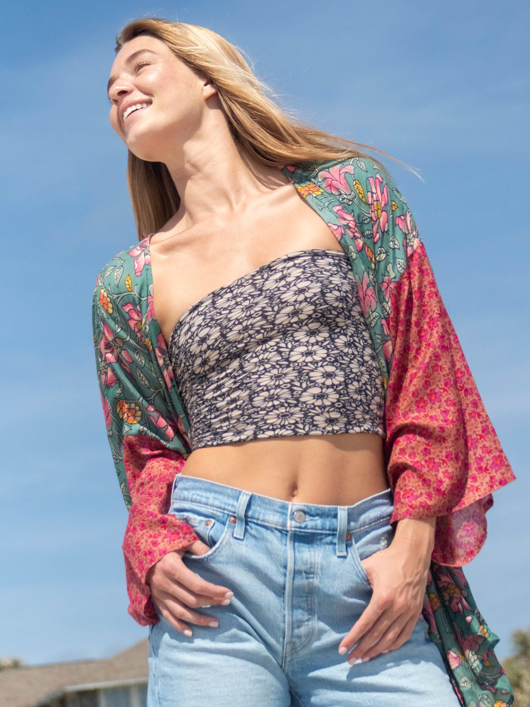 The wide sleeves and oversized fit! Brighten up any outfit with the mixed prints!
