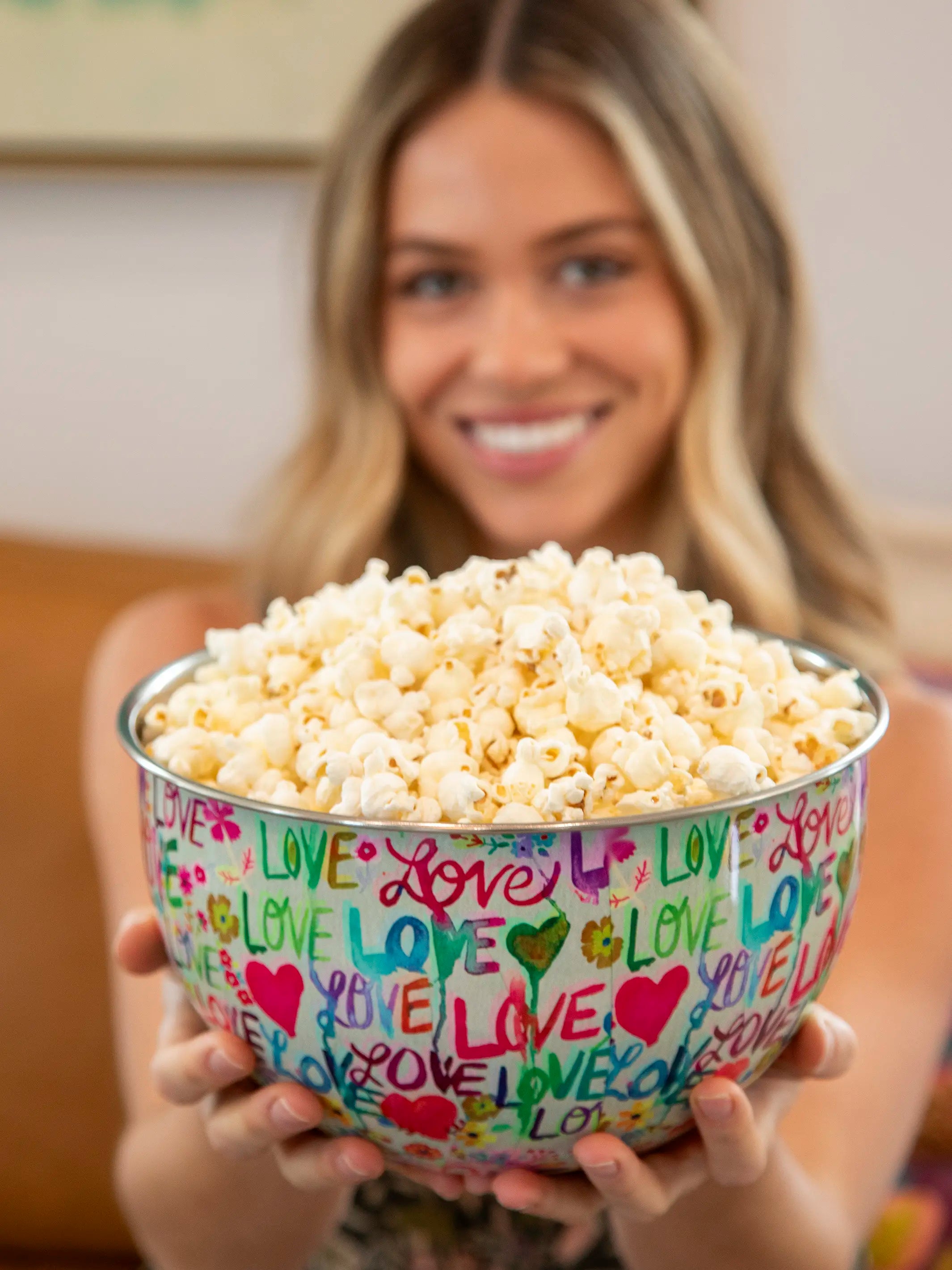 The colorful, printed artwork is much more fun than a plain, boring bowl! Super sturdy and great for prepping salad or holding snacks!