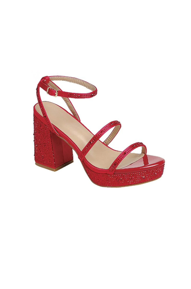 Take your look up a notch with the Swank Heels! This gorgeous style features a lightly-padded insole, open toe, ankle strap, and 3.5" chunky heel that is completely adorned with all-around stone embellishments for luxurious style. For the perfect fit, size down half a size. Stand tall and make a statement in stunning gold!