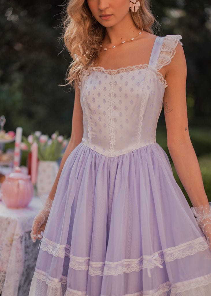 The Teacup Dress is a fairytale-inspired design, featuring a soft lavender hue adorned with delicate lace detailing and layered tulle. The structured bodice, accented with feminine touches, pairs perfectly with the skirt for an elegant yet playful silhouette. Available in women’s and little girl sizes, it’s ideal for creating magical mother-daughter moments or making any special occasion unforgettable. Step into a world of charm with the Teacup Dress!