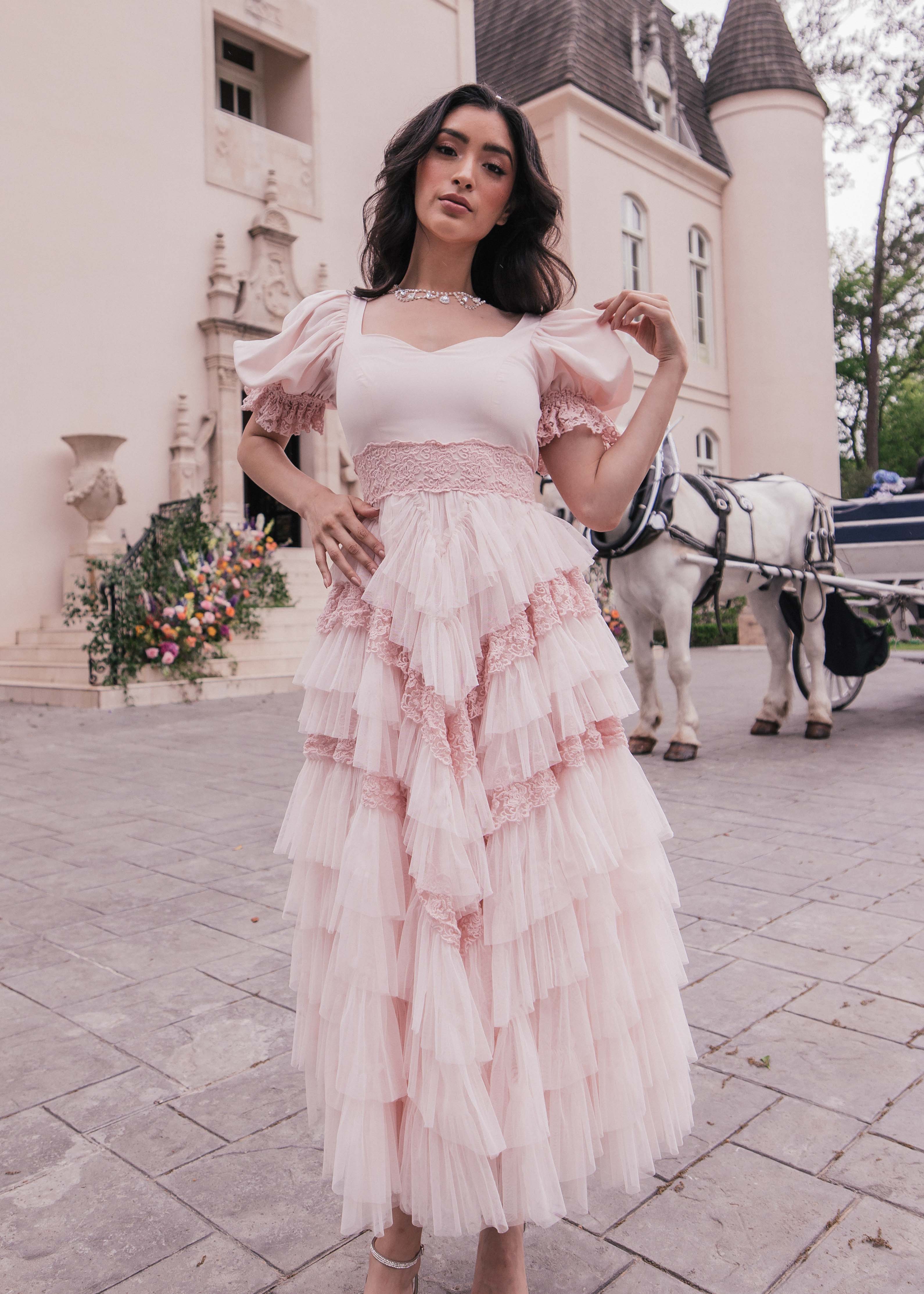 We've got a feeling you're going to fall in love with this one. The lace detailing adds a touch of vintage charm, while the flattering ruffle A-line skirt creates a feminine and flattering shape. Wear it to a wedding or any special occasion and you'll feel confident and beautiful.