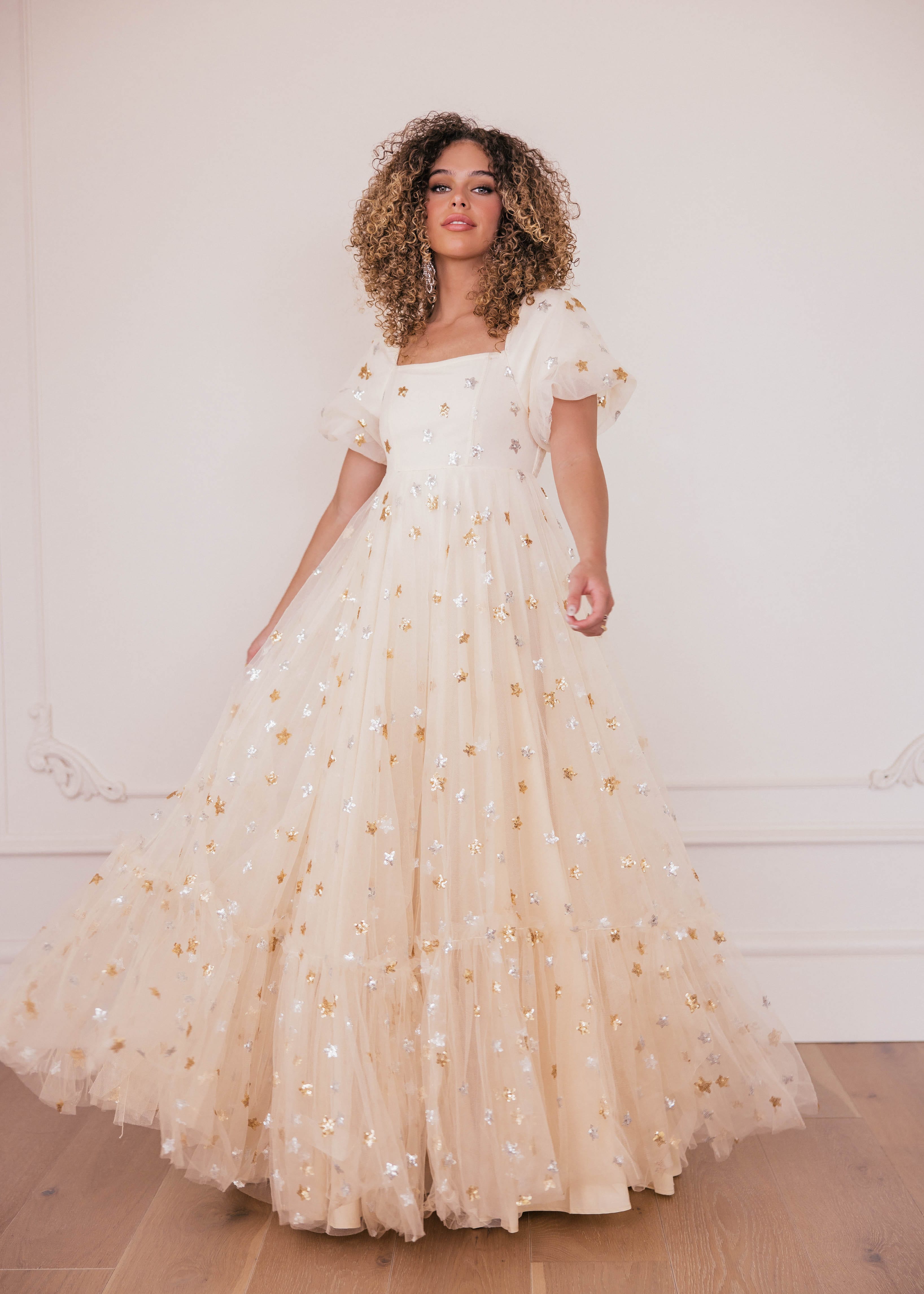 This gown is perfect for any special occasion. Our signature elastic puff sleeve and square neckline create a feminine look. Features a smocked back and hidden back zipper for an easy fit. The maxi silhouette will be comfortable to dance the night away in. Fully lined. This dress is sure to be a crowd favorite.
